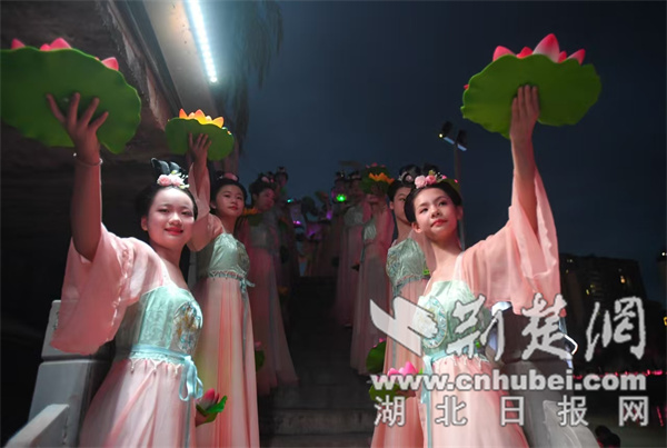 Jingchu.com(Hubei Daily)新闻(通讯员Chen Guodong)Silver和Han Dynasty距离很远,并且河灯笼点燃。 8月29日晚上,在湖北省Shiyan City的Tianhe河的河岸,微风轻声吹来,水浪波动。在Yun'an Bridge旁边,一个Qixi River Lantern祈祷仪式延续了成千上万的传统。 27穿着汉夫(Hanfu)的舞者,就像仙女们在音乐上舞蹈精美,反映了莲花河灯笼的缓慢时间,这似乎指导了牛仔桥的会议和织布桥的指导,并为年度仪式“ Homettown”绘制了一个出色的中风。